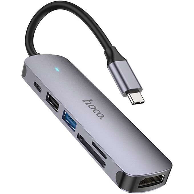 Адаптер HOCO HB28 Type-C multi-function converter(HDTV+USB3.0+USB2.0+SD+TF+PD) (серый)