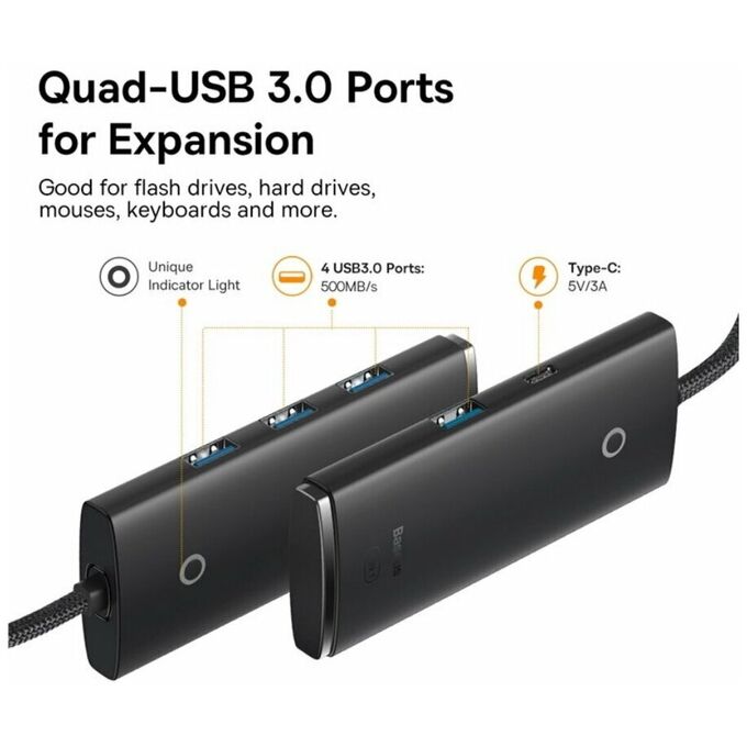 Поддержка одновременного расширения для 4 устройств, хорошо подходит для флеш-накопителей, жестких дисков, мыши, клавиатуры и т. Д.