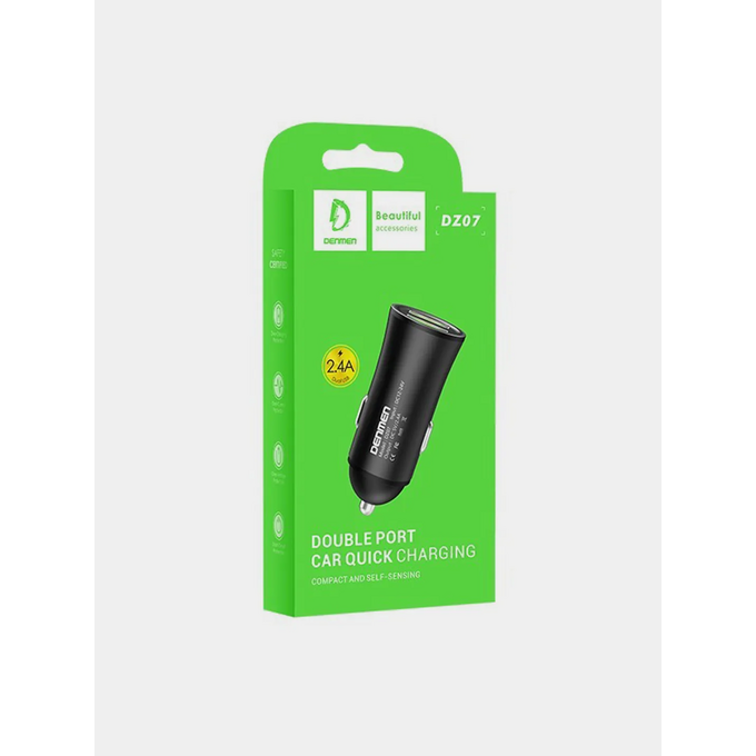 Адаптер питания автомобильный Denmen DZ07, 2.4А, 2 USB, 5V, пластик, серебристый, фирменная упаковка