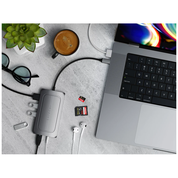 Мощный и одновременно ультра-стильный адаптер оснащен портом HDMI 8K, Gigabit Ethernet, USB-C PD, USB-A для передачи данных, устройствами чтения карт SD и портом аудиоразъема – и все это через один порт USB-C.