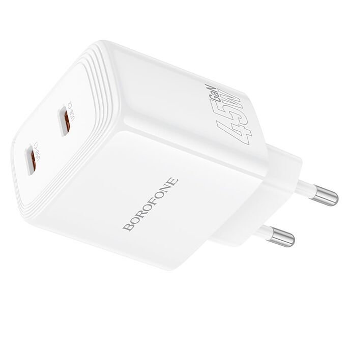 Адаптер Сетевой Borofone BN31 Cargador PD 2*Type-C 3A/45W (white) (241993)