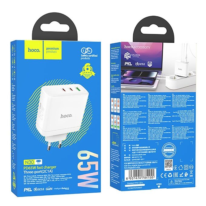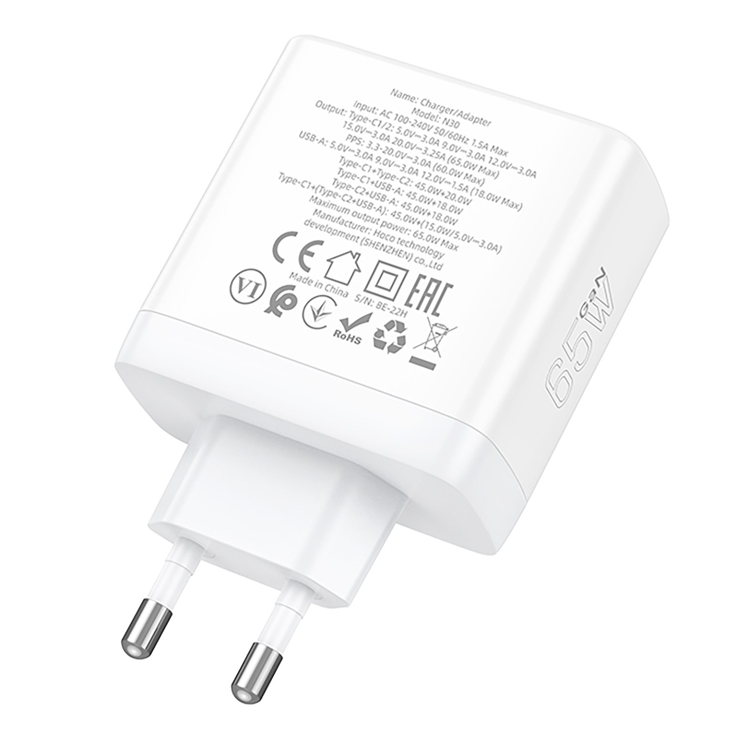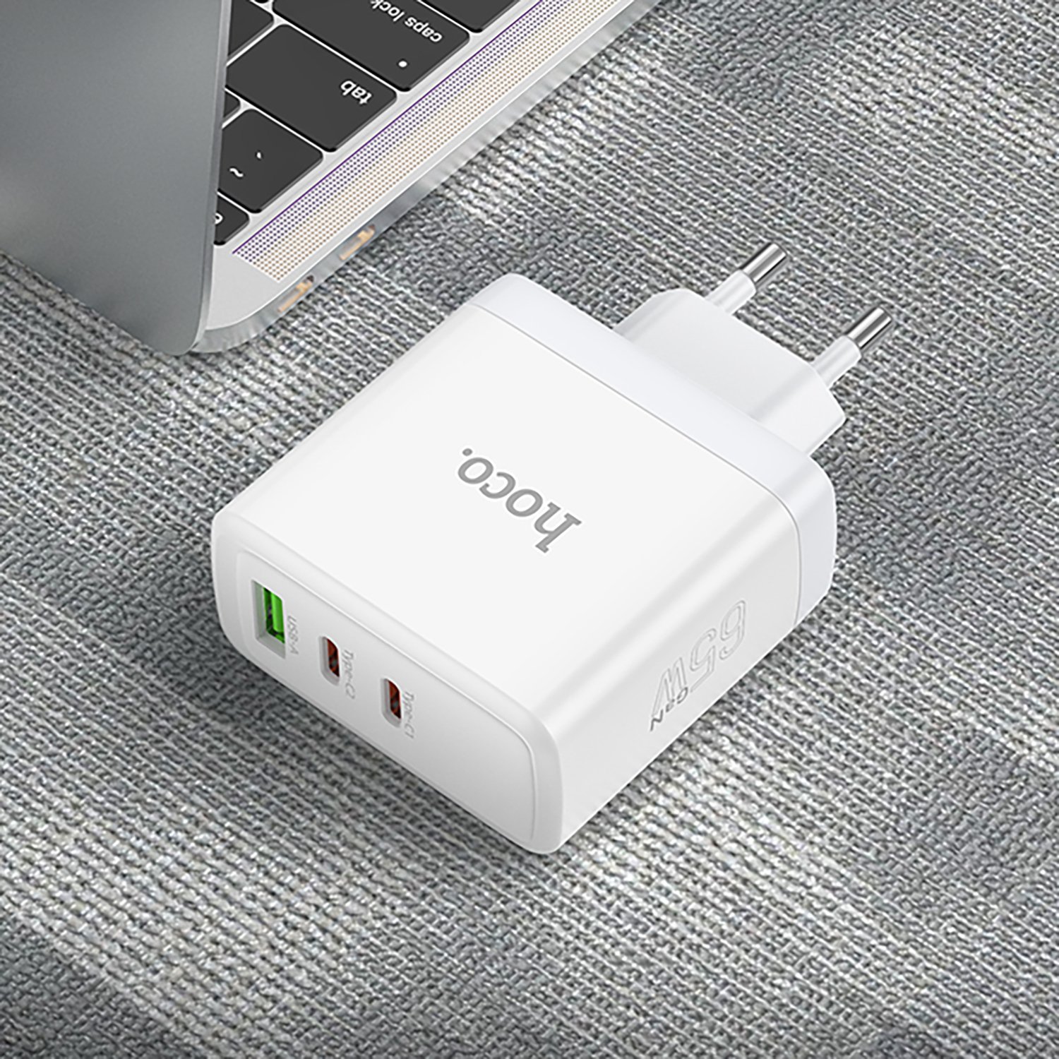 Адаптер Сетевой Hoco N30 Glory PD GaN 2Type-C/USB 3A/65W (white) (241004)