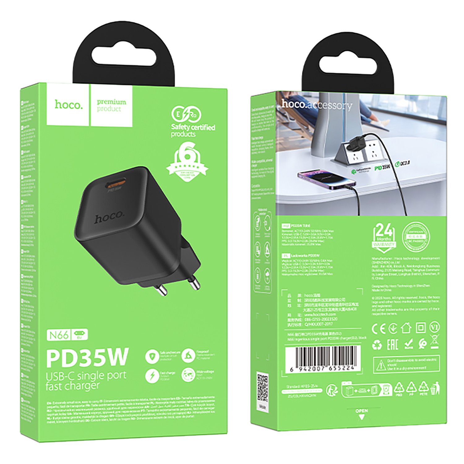 Адаптер Сетевой Hoco N66 Ingenious PD Type-C 3A/35W (black) (241006)