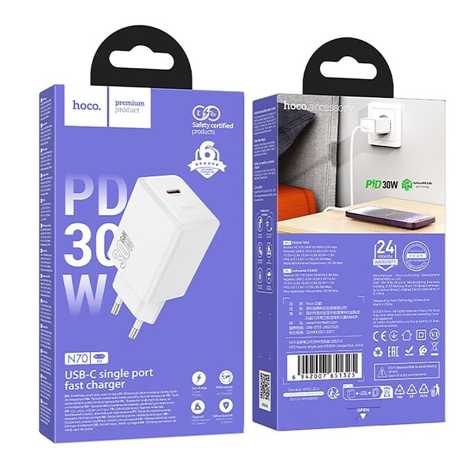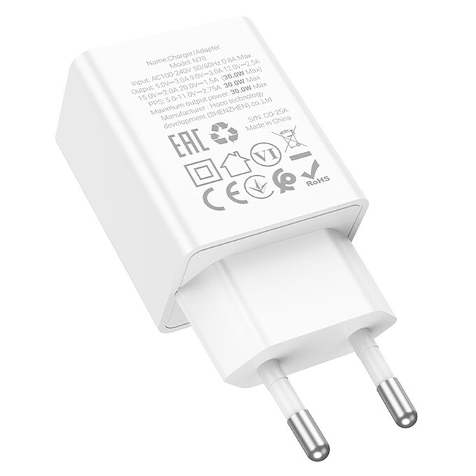 Адаптер Сетевой Hoco N70 Nuevo PD Type-C 3A/30W (white) (241797)