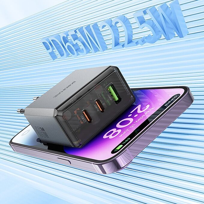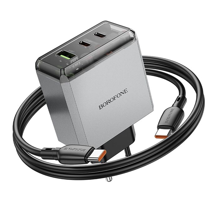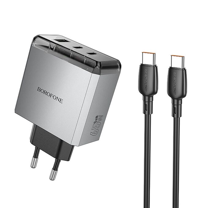 Адаптер Сетевой с кабелем Borofone BN22 Lena PD 2Type-C/USB 3A/65W (Type-C/Type-C) (metal gr(241998)