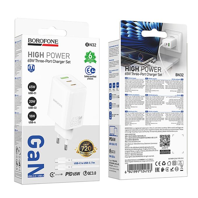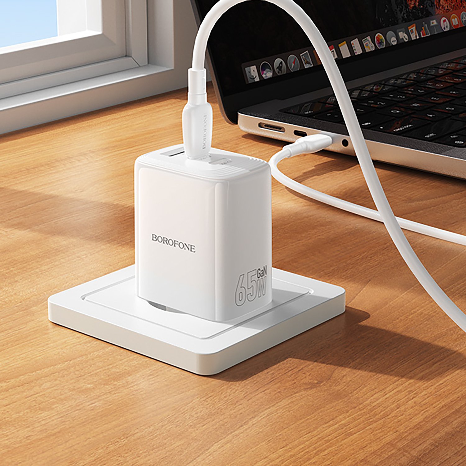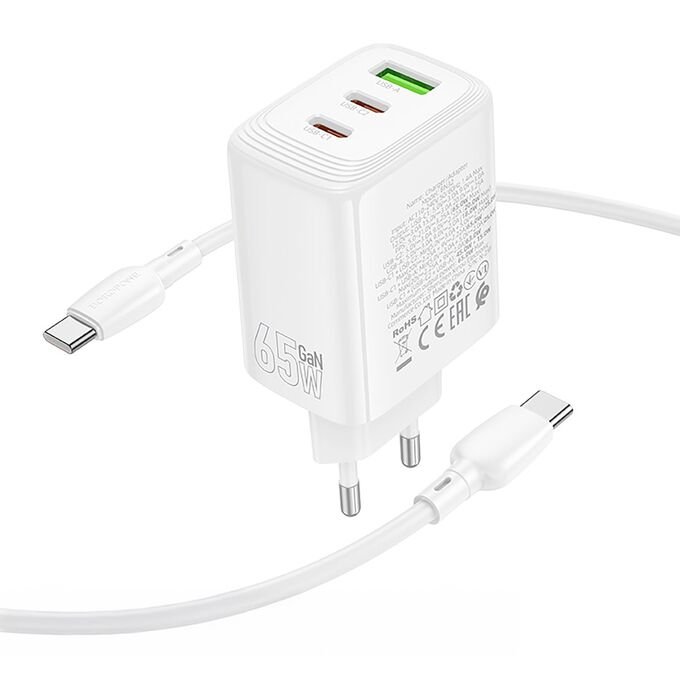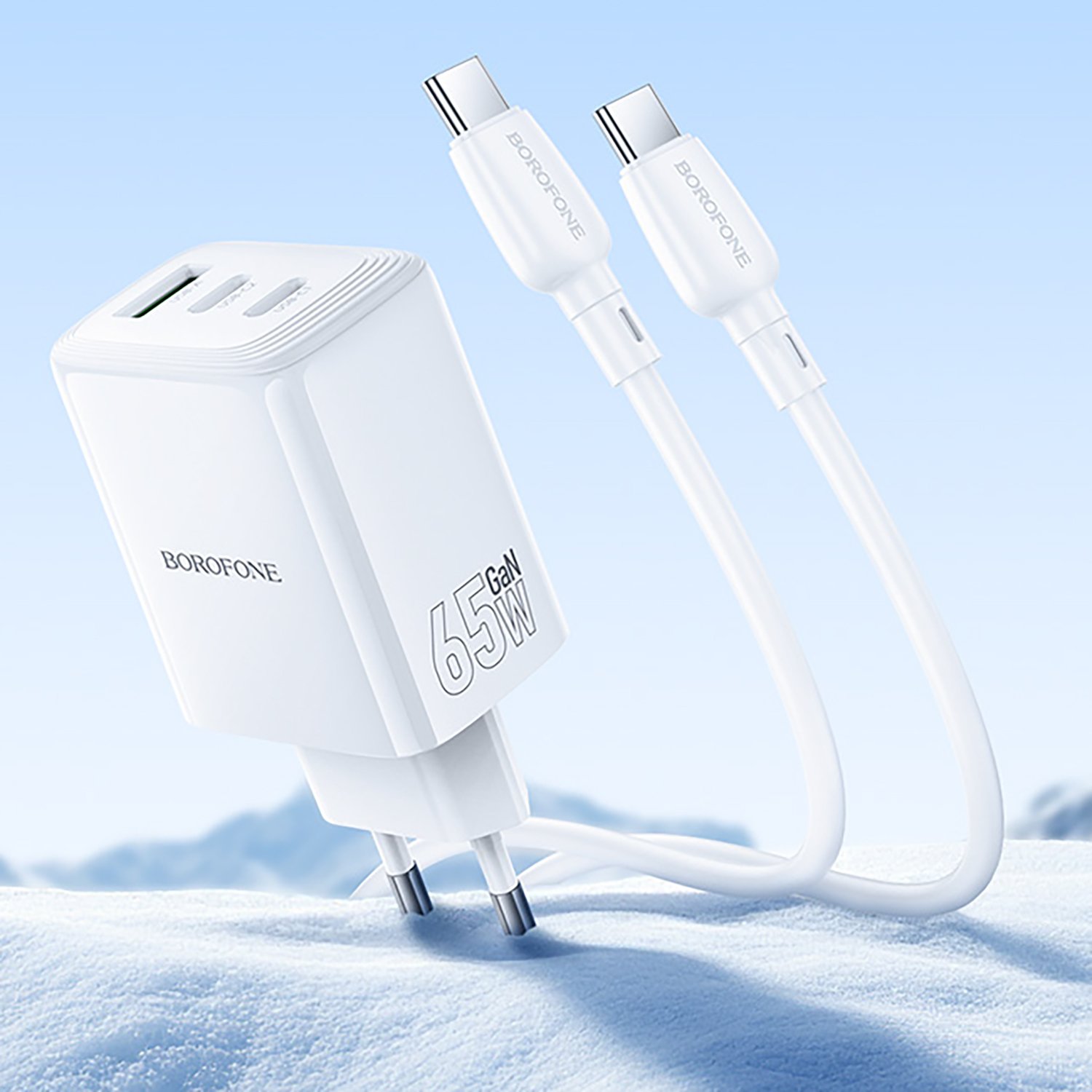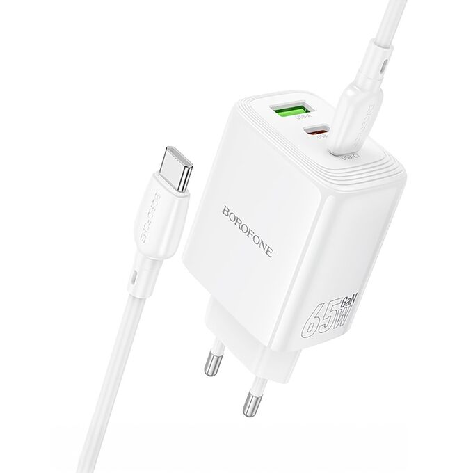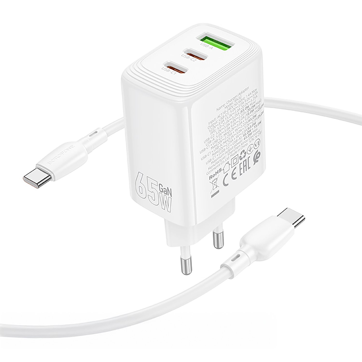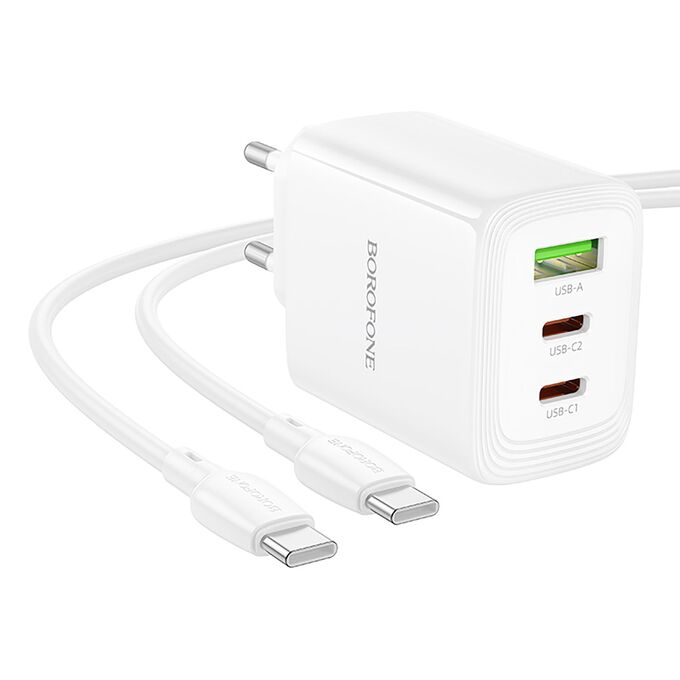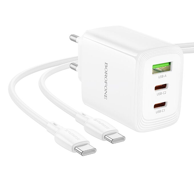 Адаптер Сетевой с кабелем Borofone BN32 Cargador PD 2Type-C/USB 3A/65W (Type-C/Type-C) (whit(241992)