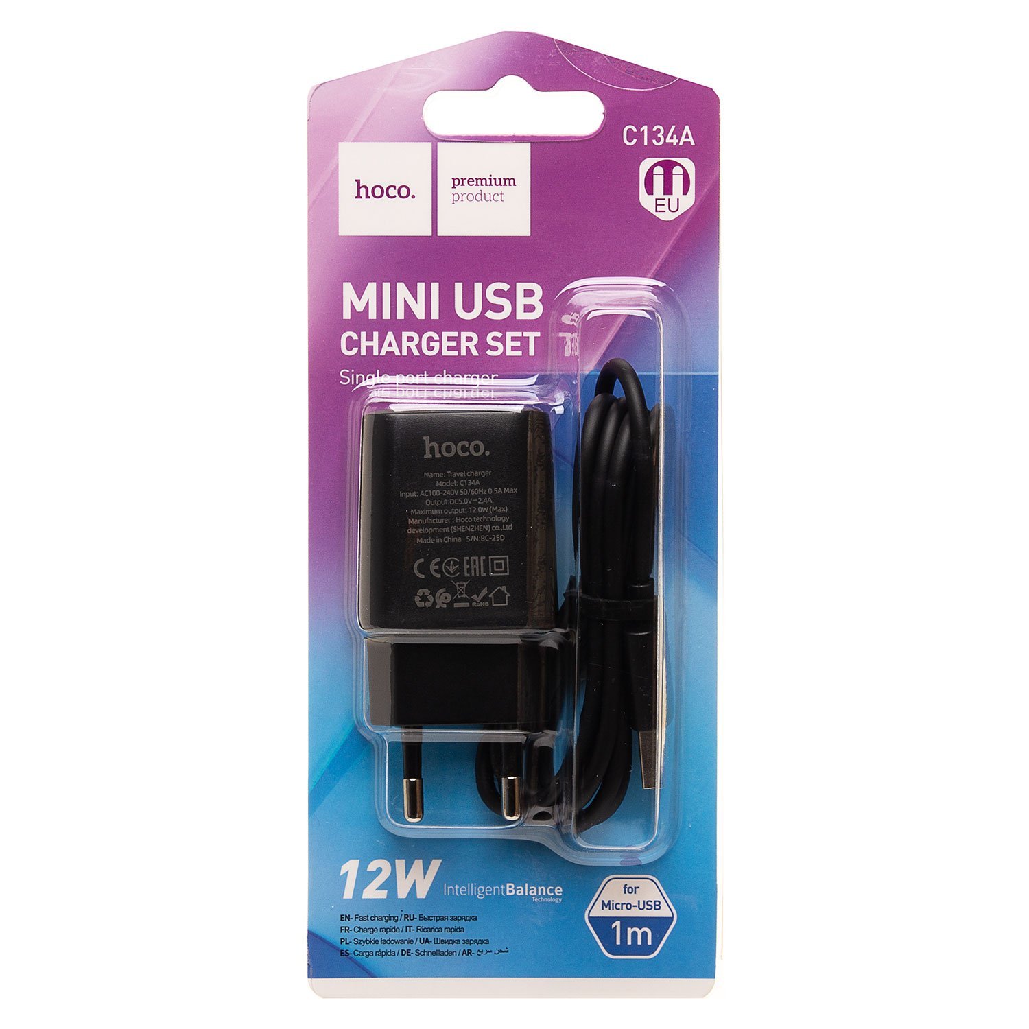 Адаптер Сетевой с кабелем Hoco C134A Solid USB 2,4A/12W (USB/Micro USB) (black) (240261)