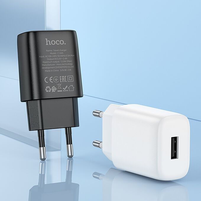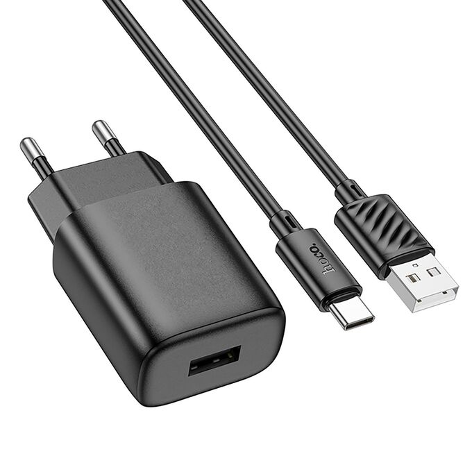 Адаптер Сетевой с кабелем Hoco C134A Solid USB 2,4A/12W (USB/Type-C) (black) (240263)