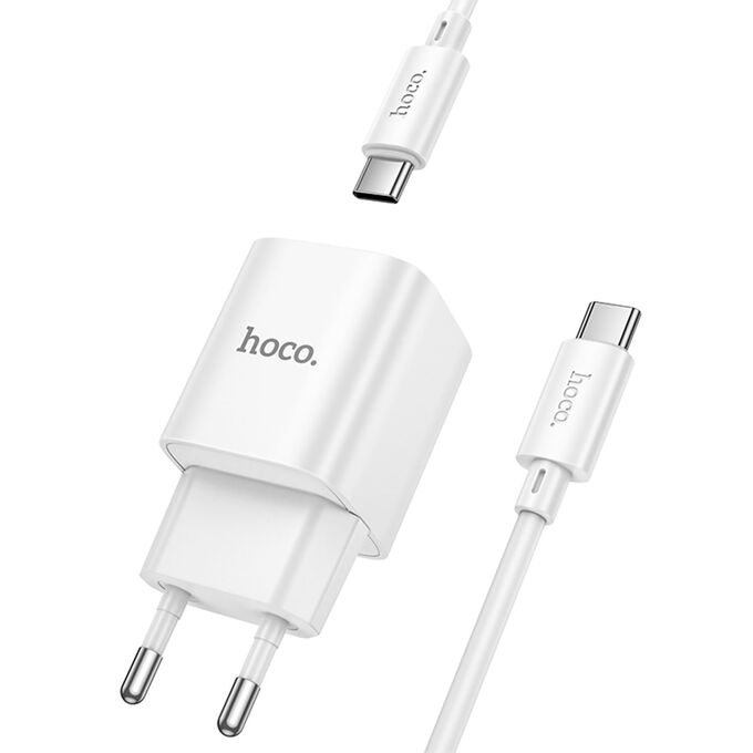 Адаптер Сетевой с кабелем Hoco C146A Charm PD Type-C 20W (Type-C/Type-C) (white) (238660)