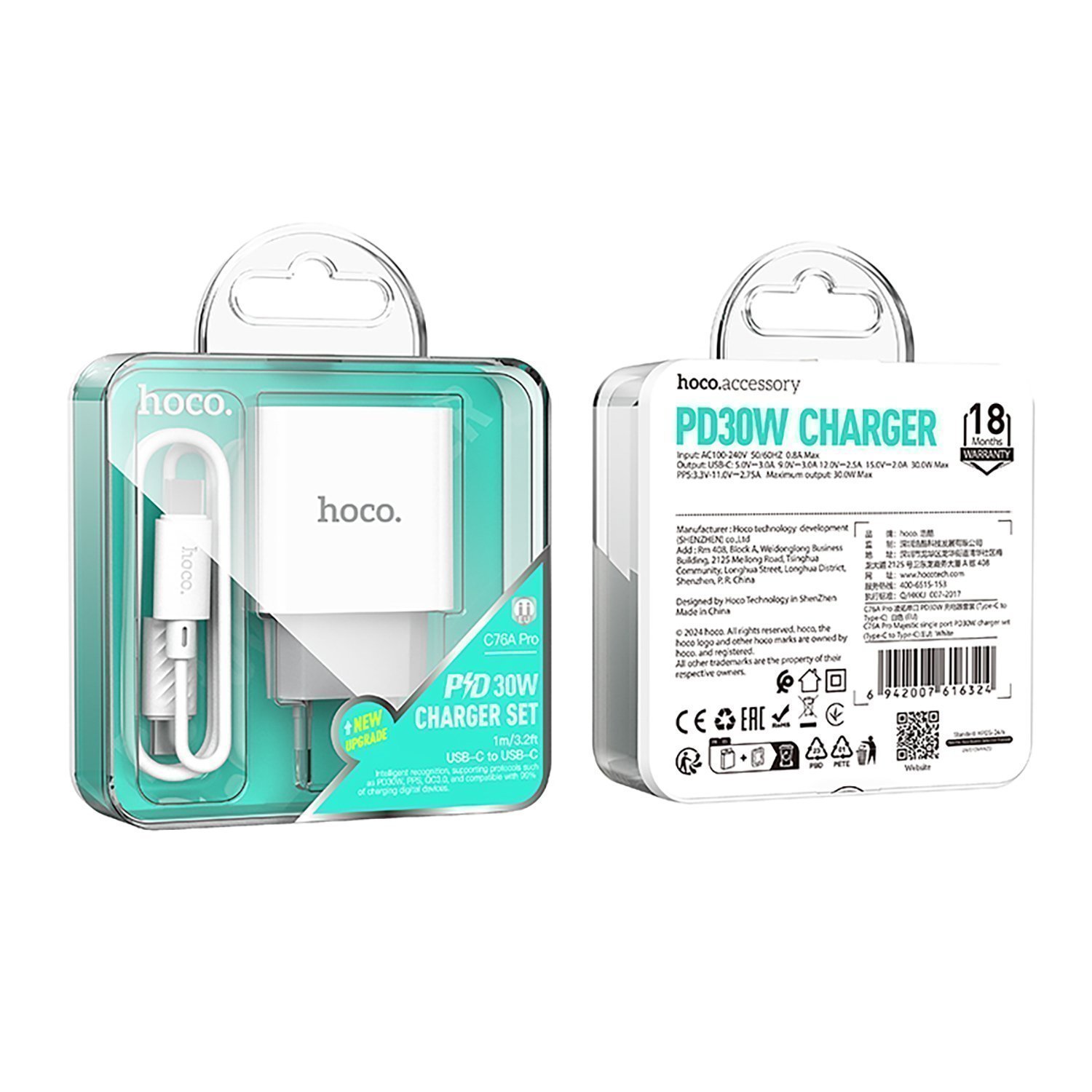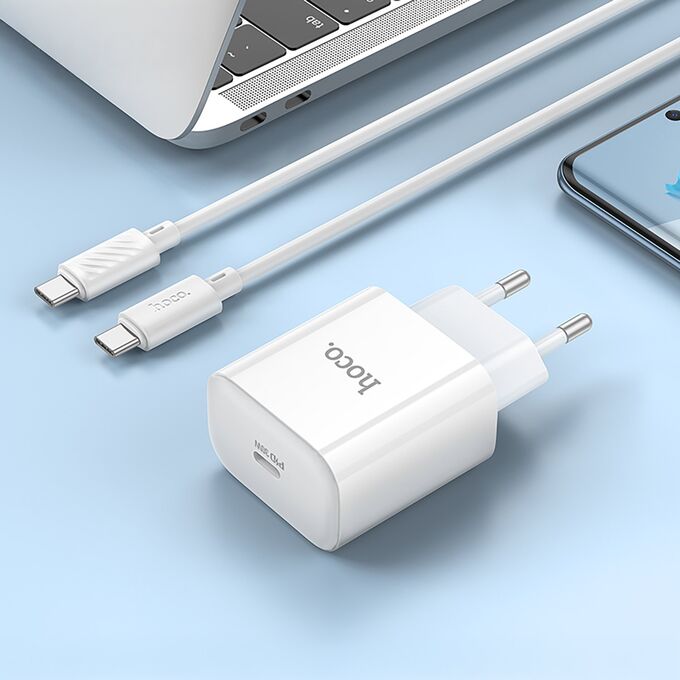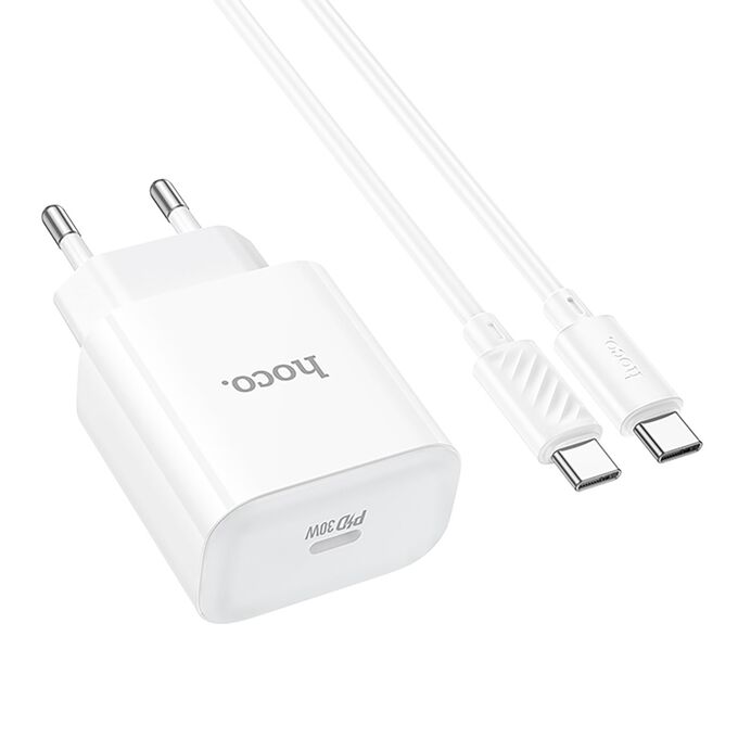 Адаптер Сетевой с кабелем Hoco C76A Pro Majestic PD Type-C 3A/30W (Type-C/Type-C) (white) (240153)