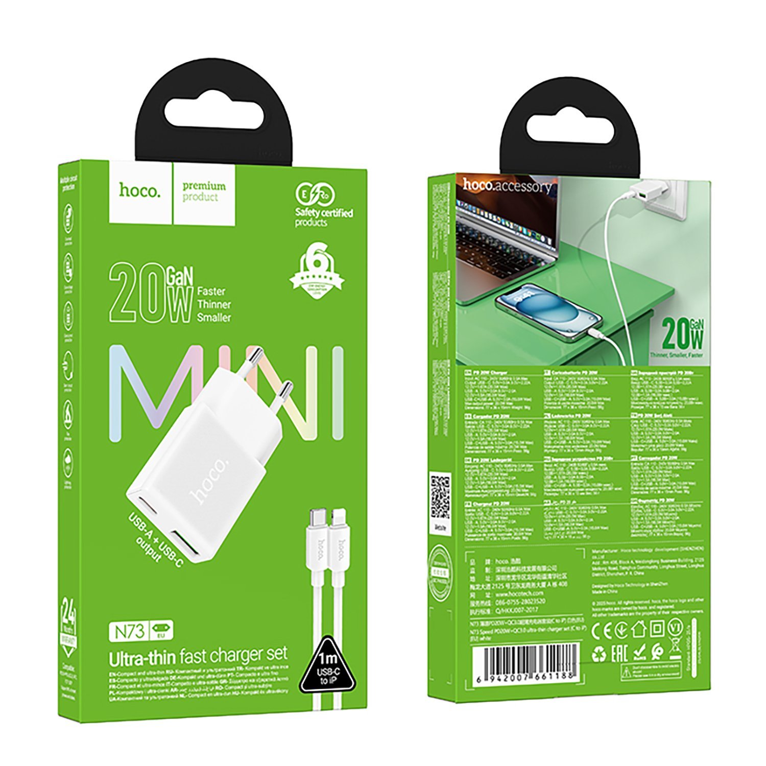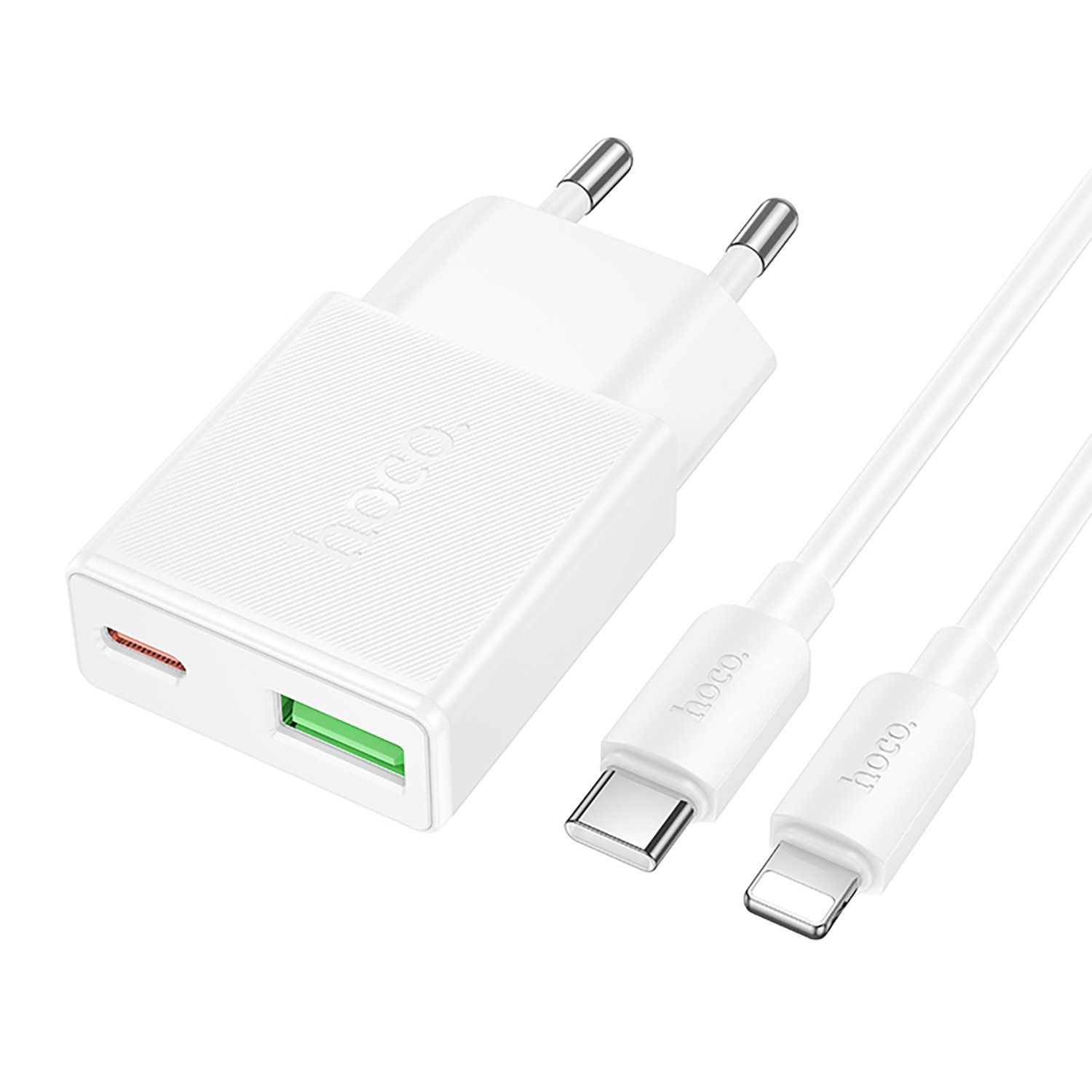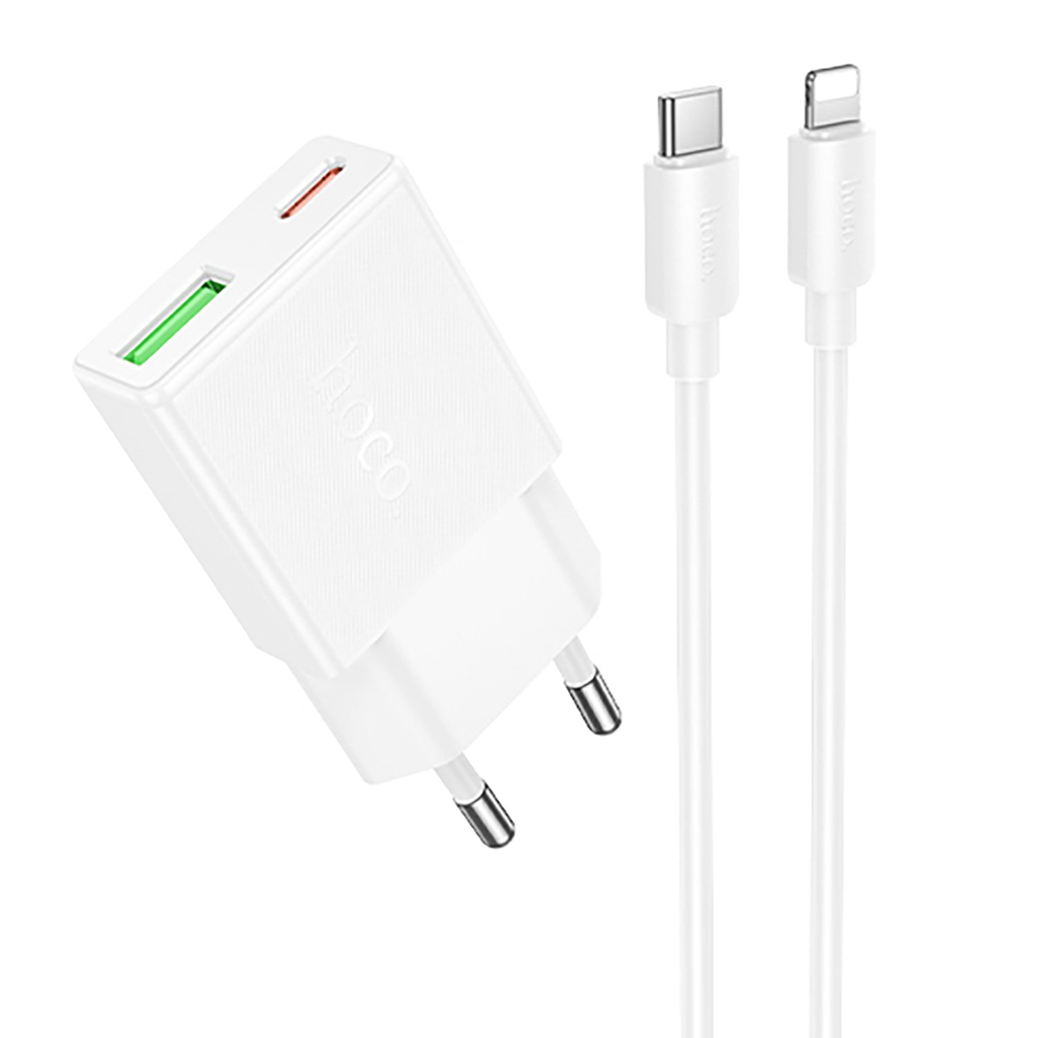Адаптер Сетевой с кабелем Hoco N73 Mini PD+QC3.0 USB/Type-C 20W (Type-C/Lightning) (white) (242973)