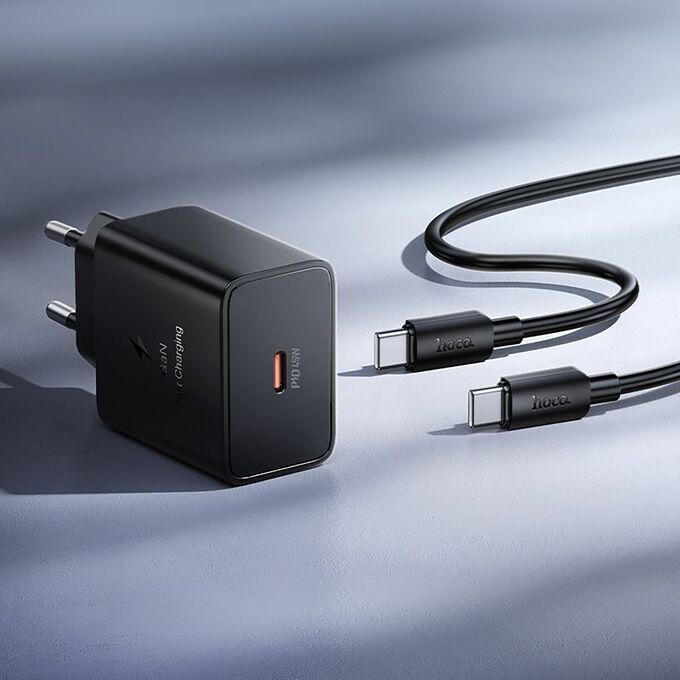 Адаптер Сетевой с кабелем Hoco N77 PD GaN Type-C 45W (Type-C/Type-C) (black) (243842)