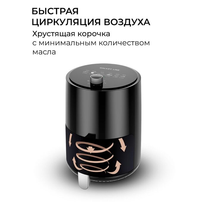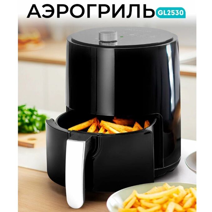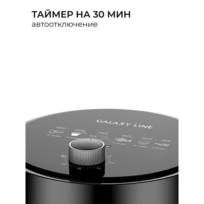 Аэрогриль Galaxy Line GL2530 – это простой способ готовить любимые блюда быстрее, полезнее и без лишних хлопот. Мощность 1400 Вт обеспечивает быстрый нагрев, а система циркуляции горячего воздуха равномерно прожаривает продукты, создавая аппетитную хрустящую корочку. Антипригарная чаша и решётка не дают пище пригорать, упрощая уход, а таймер на 30 минут позволяет не стоять у плиты – техника всё сделает сама. Вдохновение для новых гастрономических экспериментов найдётся в книге рецептов, которая идёт в комплекте.