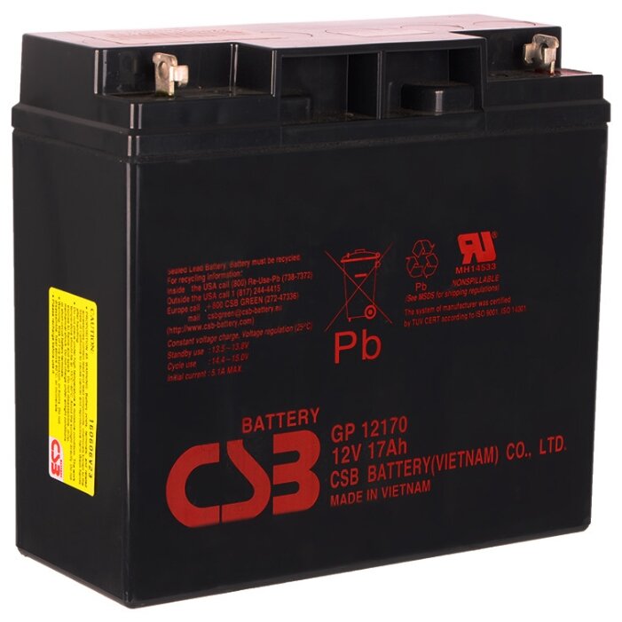 АКБ для ИБП 12В 17Ач CSB GP12170, 68W/cell, 204 Whr, 5.59 кг, (ШхГхВ) 181х77х167 мм (167 с клеммами)