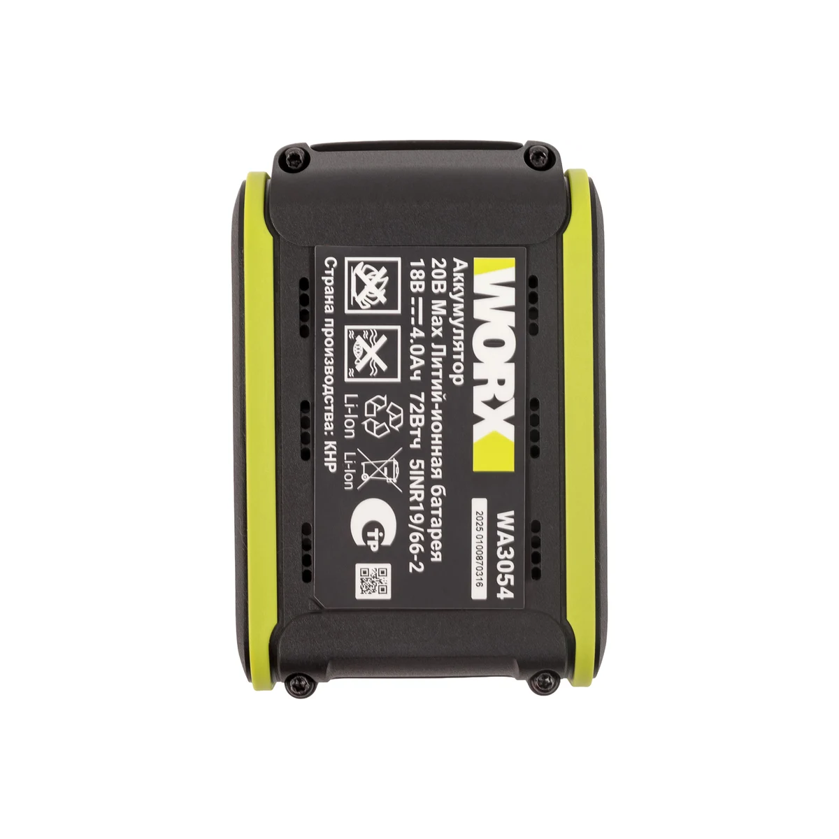 Аккумулятор WORX Professional 20В, 4А*ч WA3054 представляет собой надежное решение для профессионального использования. Благодаря литий-ионной технологии, он обеспечивает стабильную и длительную работу без эффекта памяти, что позволяет поддерживать высокую производительность на протяжении всего времени эксплуатации. Слайдерное устройство аккумулятора упрощает его установку и замену, что особенно удобно в условиях интенсивной работы.