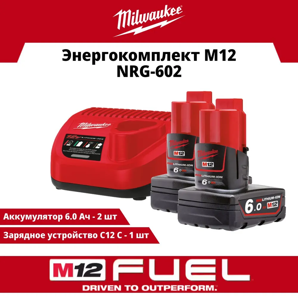 АКБ+Зарядное устройство Milwaukee M12 NRG-602 (4933451903)