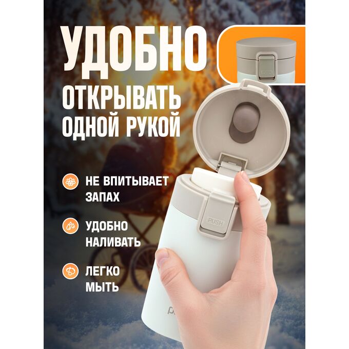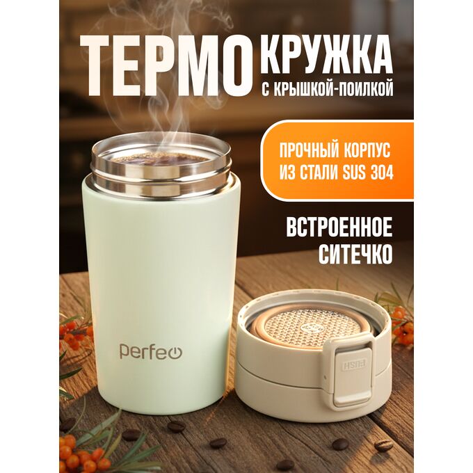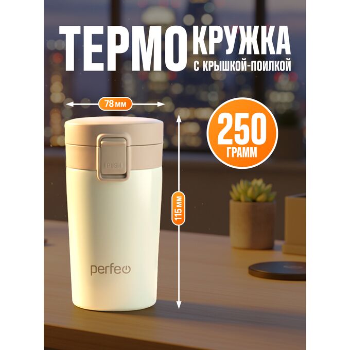Термокружка для напитков PERFEO с крышкой-поилкой, ситечком, объем 0,25 л., кремовый (PF_C3728)