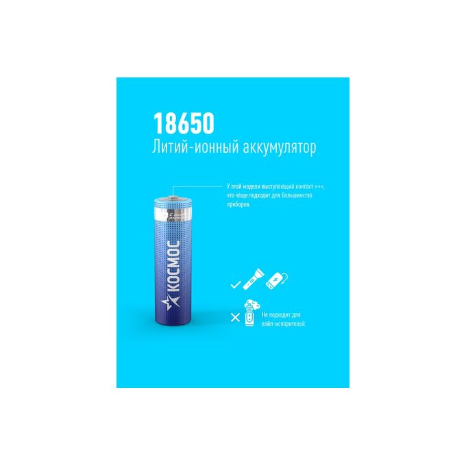 Аккумулятор Космос 18650 Li-ion 3400mAh KOC18650Li-ion34PBL1