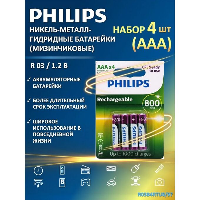 Аккумулятор MultiLife-NiMH 4AAA, 800 мA/ч