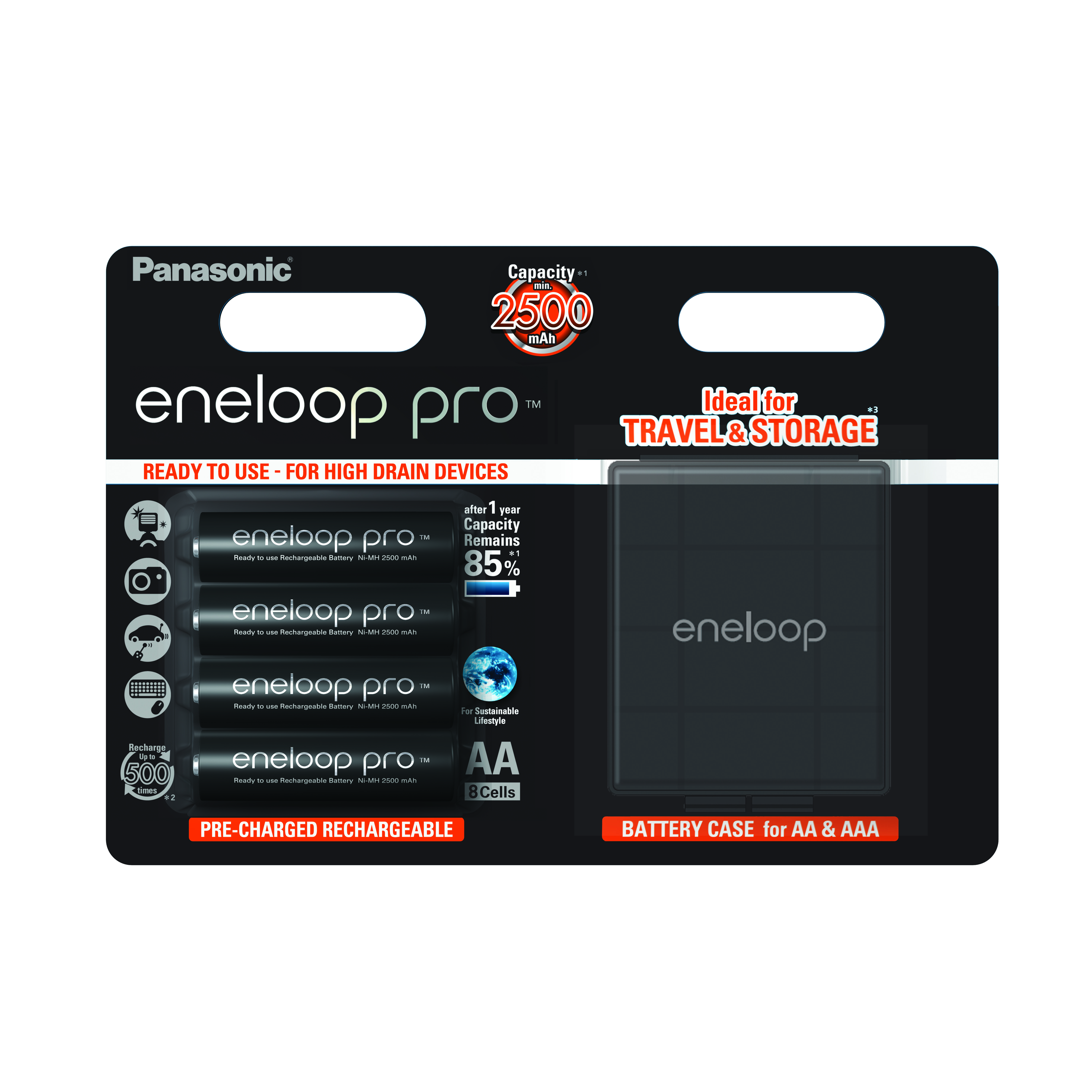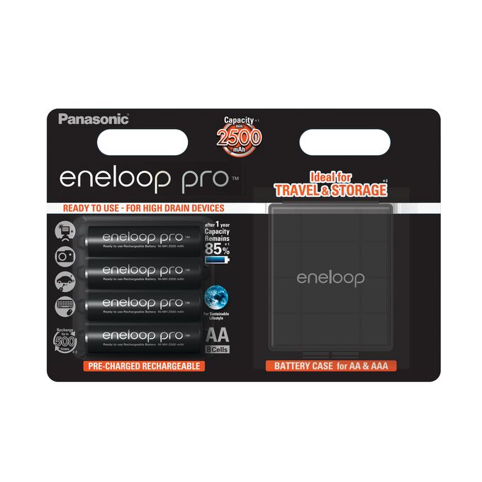 Аккумулятор PANASONIC R6 eneloop pro BK-3HCDEC4BE (2500mAh) +футляр (4 бл) (4/40)