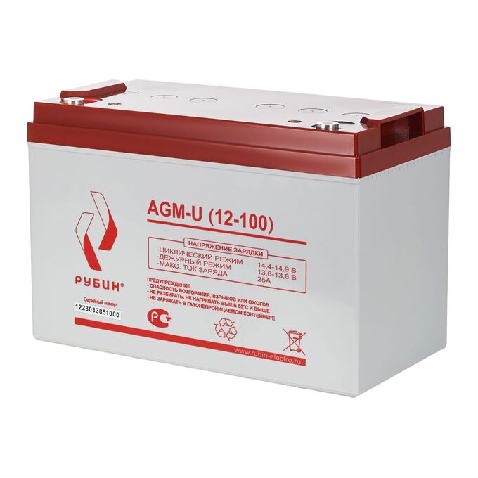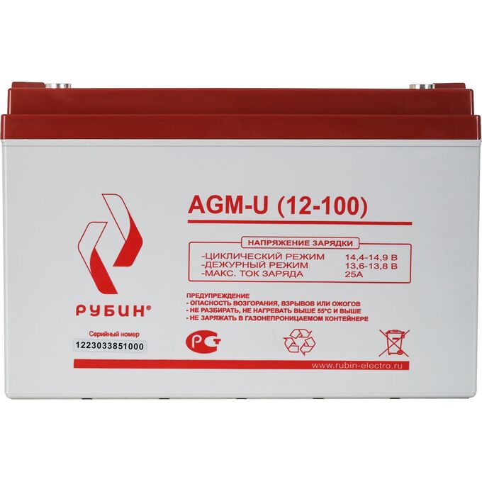 Аккумулятор АКБ 12-100 Рубин РЭ-АКБ12100 применяется для источников бесперебойного питания и систем резервного электропитания. Сохраняет работоспособность на протяжении 10-ти лет при работе в буферном режиме.