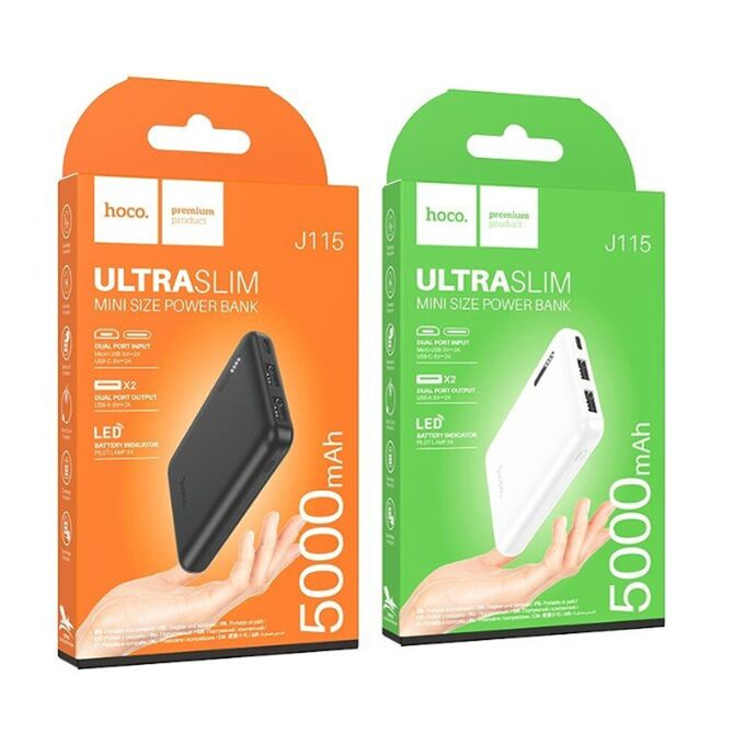 Аккумулятор внешний HOCO J115 Journey, 5000mAh, пластик, алюминий, 2 USB выхода, 2.0А, цвет: белый (1/94)
