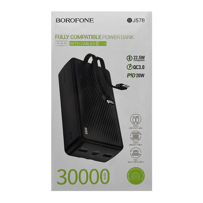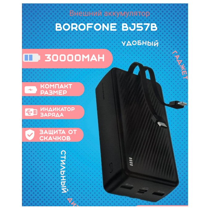 Аккумулятор внешний резервный BOROFONE BJ57B Graceful 22.5W+PD20W fully compatible power bank with cable(30000mAh) (черный)