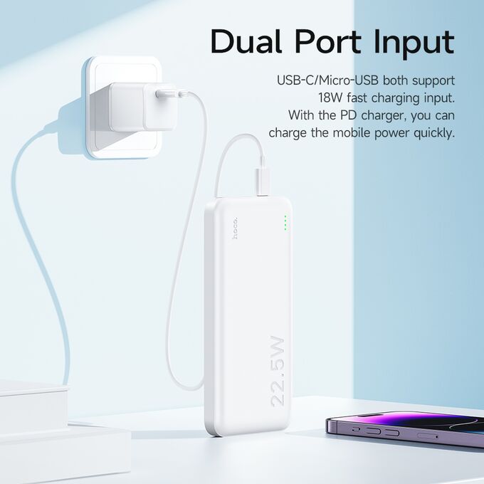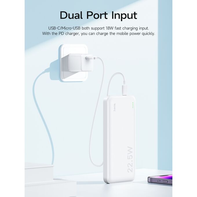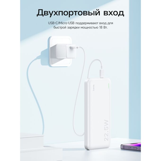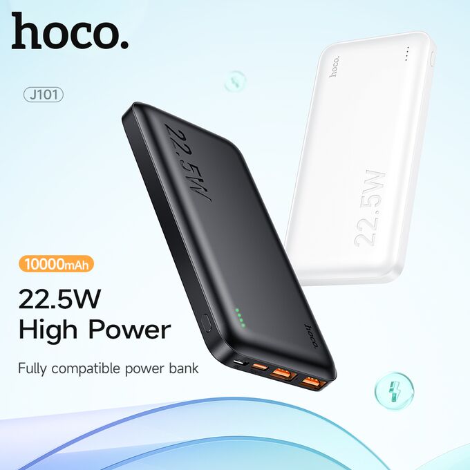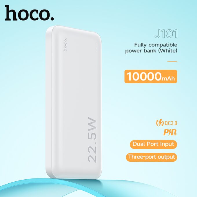Аккумулятор внешний резервный HOCO J101 Astute 22.5W fully compatible 10000 mAh (белый)