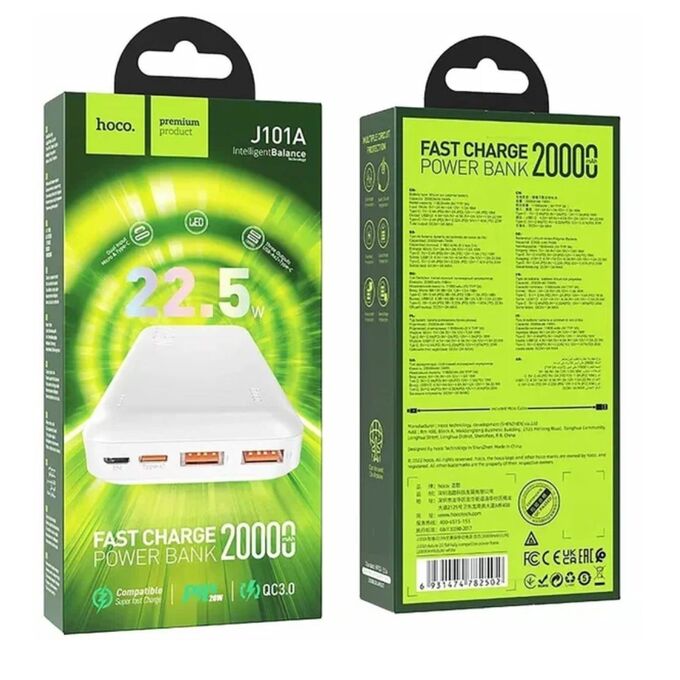 Аккумулятор внешний резервный HOCO J101A Astute 22.5W fully compatible 20000 mAh (белый)