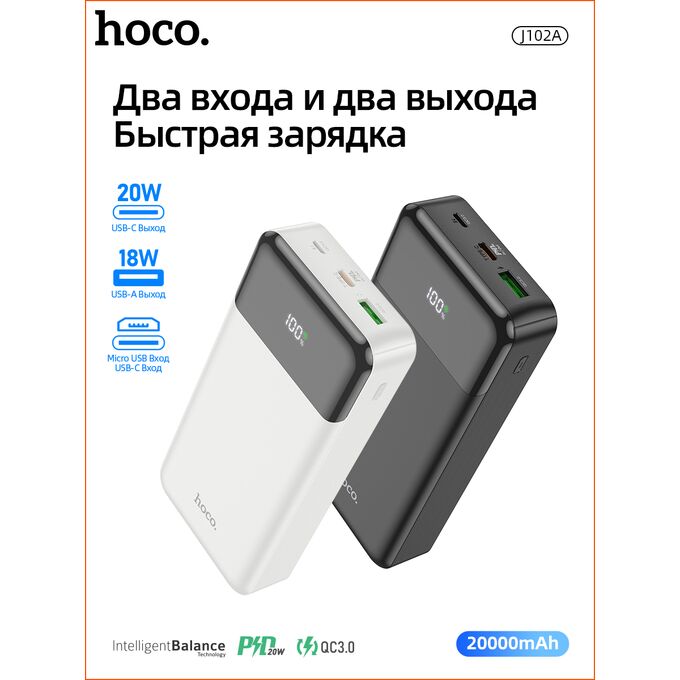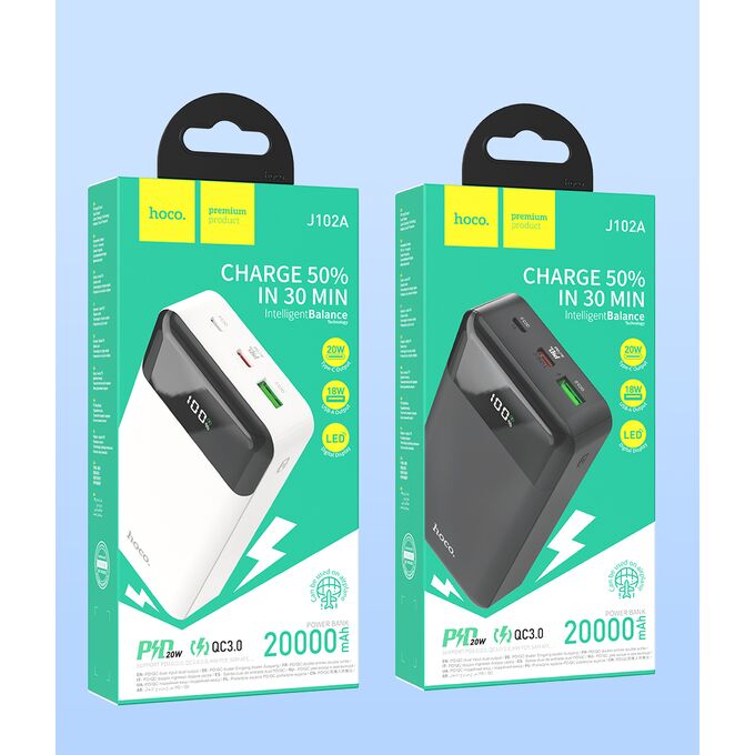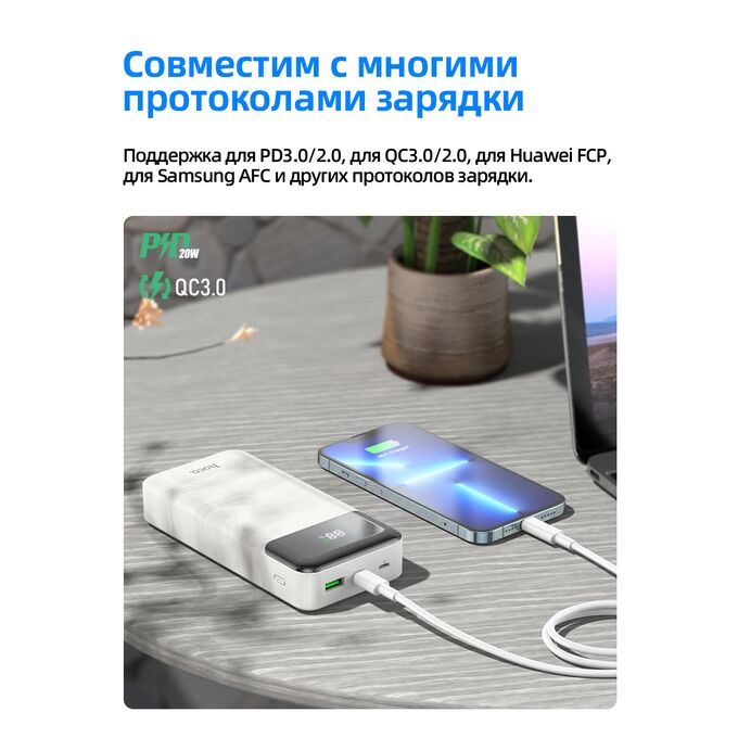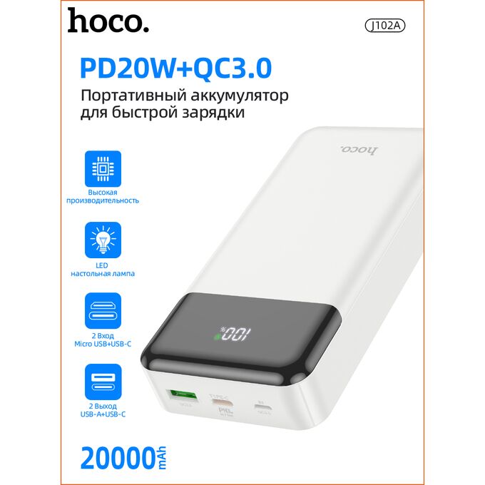 Аккумулятор внешний резервный HOCO J102A Cool figure 20000mAh (белый)