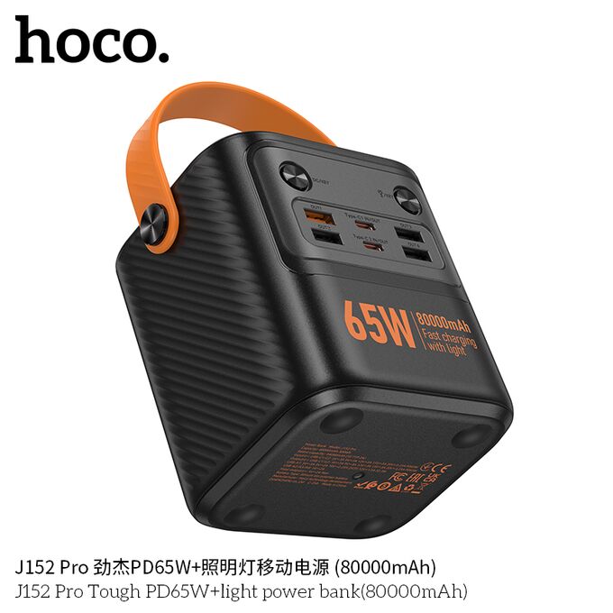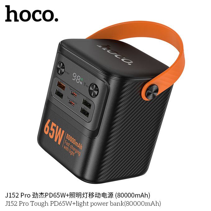 Аккумулятор внешний резервный HOCO J152 Pro Tough PD65W+light (80000mAh) (чёрный)