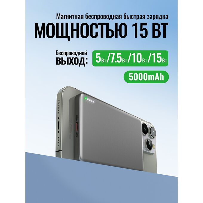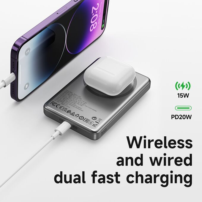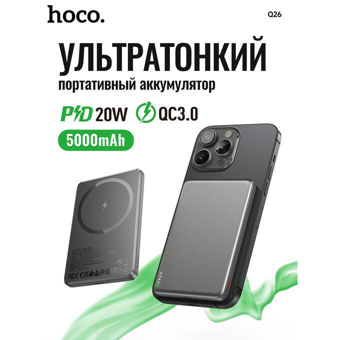 Аккумулятор внешний резервный HOCO Q26 Joy PD20W magnetic fast charging power bank(5000mAh) (серый)