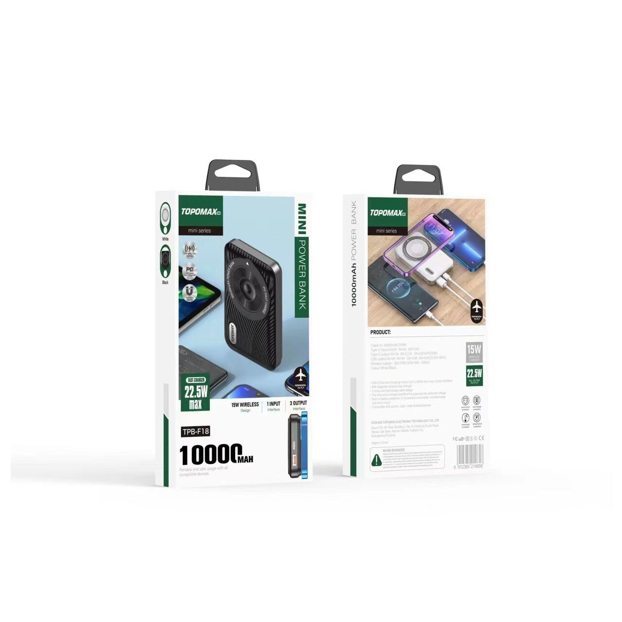 Аккумулятор внешний резервный TOPOMAX TPB-F18 10000mAh, PD 22.5W, wireless charging 15W (черный)