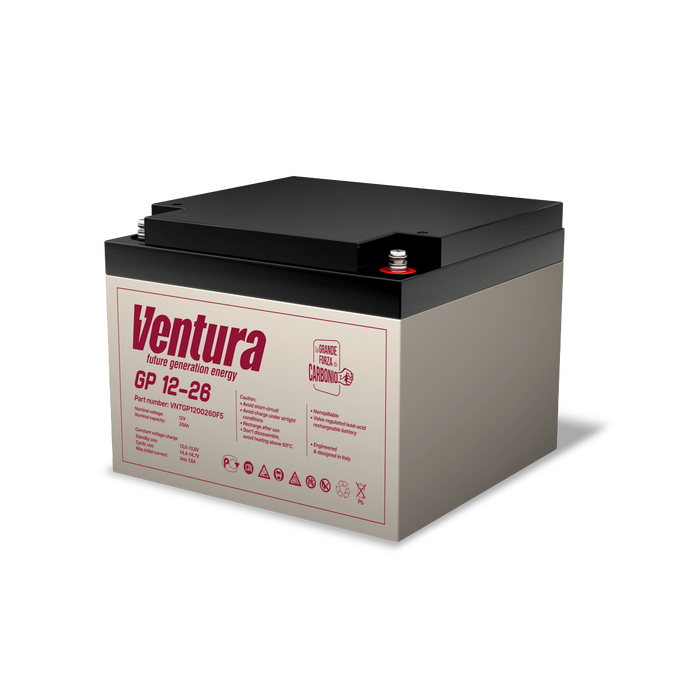 Тип клеммы: Ушко под болт+гайка M6.Номинальная емкость (20 часовой разряд до 1,75 В/эл.): 26 Ач.