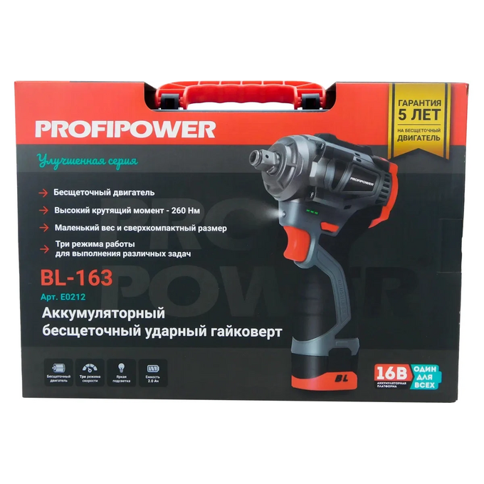 Аккумуляторный гайковерт PROFIPOWER BL-163 E0212 с акк и ЗУ