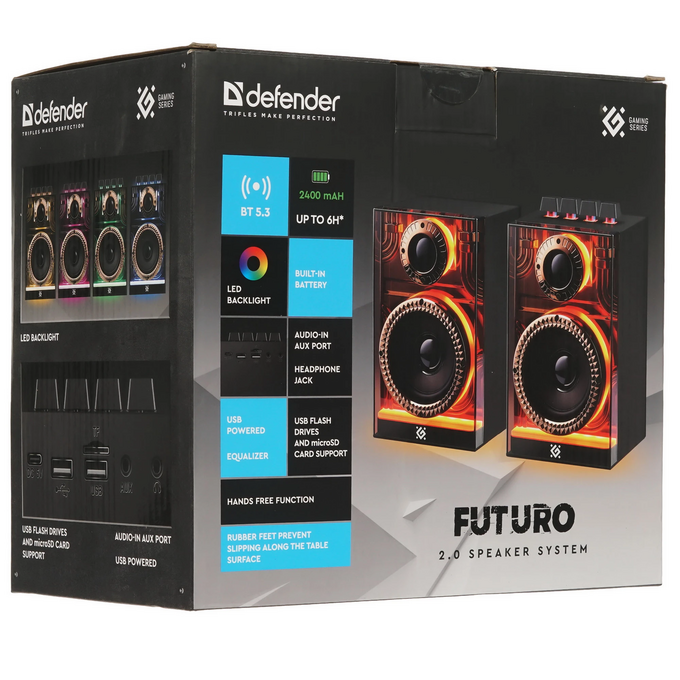 Акустическая система 2.0 DEFENDER Futuro 20 Вт, BT/USB/TF/AUX/2400мА*ч 65087