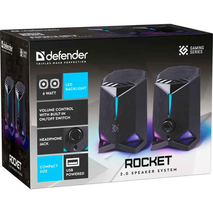 Акустическая 2.0 система DEFENDER Rocket 6Вт, подсветка, питание от USB (65094)