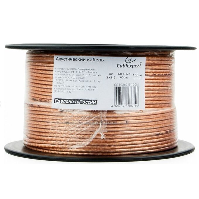 Акустический кабель Cablexpert CC-TC2x25-100M прозрачный 100м на катушке