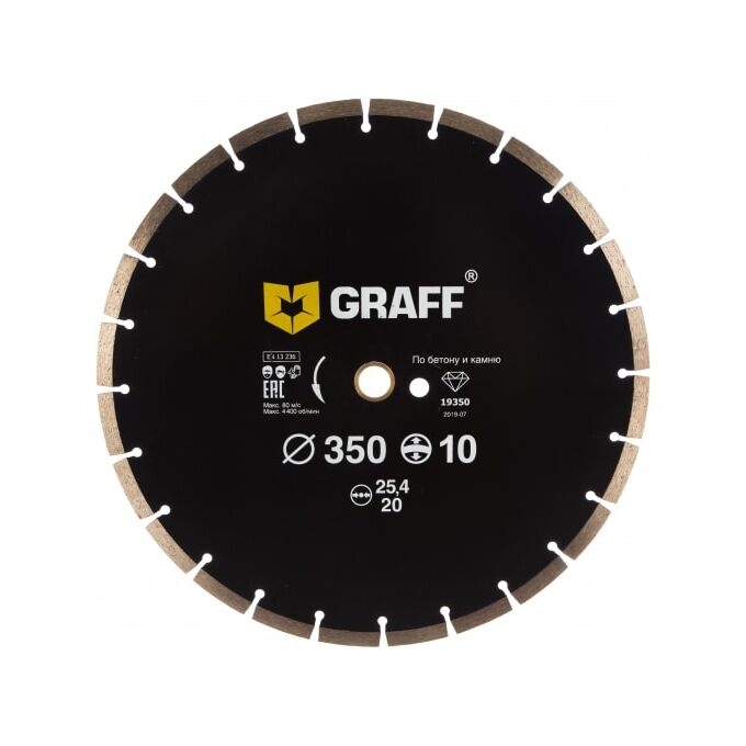 Алмазный диск сегментный по бетону и камню GRAFF GDD 18 350.10 (19350) 350x10x3.4x25.4-20 мм