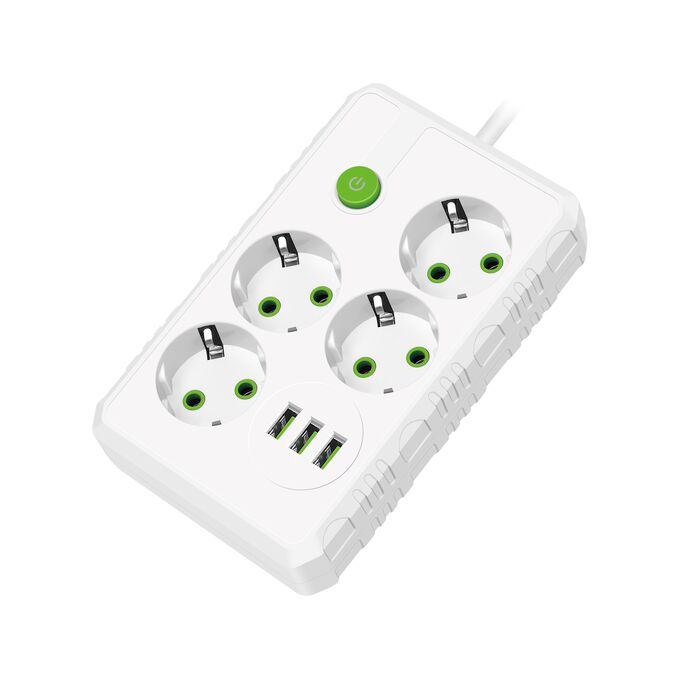 Сетевой удлинитель Amper , 2,0м, 4 розетки, 10А, 2500 Вт, 3usb, белый
