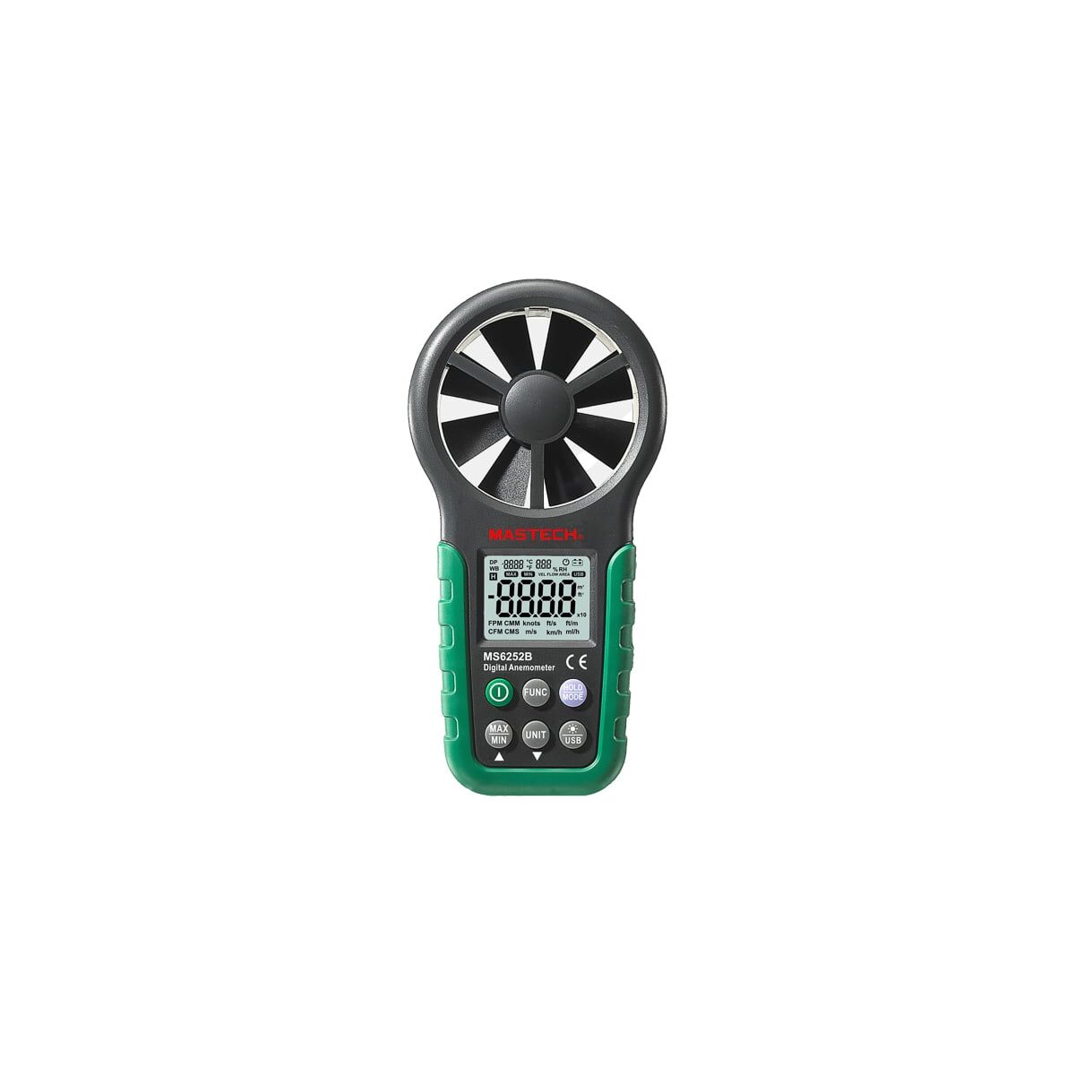Цифровой анемометр MS6252B MASTECH используется для замера скорости газового/воздушного потока. Данная модель позволяет провести замеры температуры окружающей среды и относительной влажности, определить точку росы.