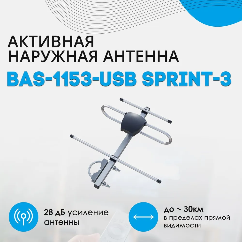 Антенна ТВ РЭМО "SPRINT-3", активная, наружная, питание от антенного разъема, (BAS-1153-5V), (Арт. PF_301031)