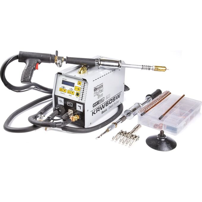Аппарат для контактной точечной сварки KraftWell 220 В, споттер, без тележки KRW60SW/220L изготовлен с учетом потребностей мастерских, занимающихся кузовным ремонтом автомобилей. Отличается высоким качеством исполнения и понятной панелью управления. Удобство и простота эксплуатации достигаются благодаря интуитивно понятному дисплею и кнопкам управления.