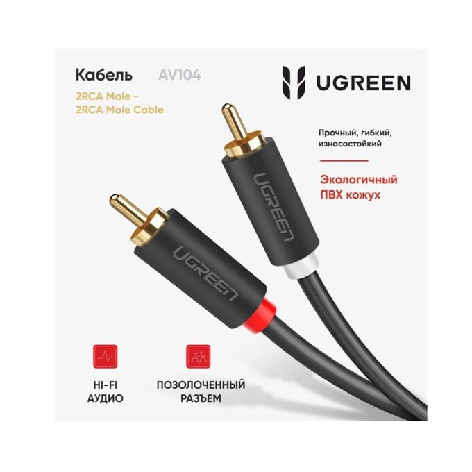 Аудиокабель UGREEN AV104 (10517) 2RCA Male to 2RCA Male Cable 1,5m Black