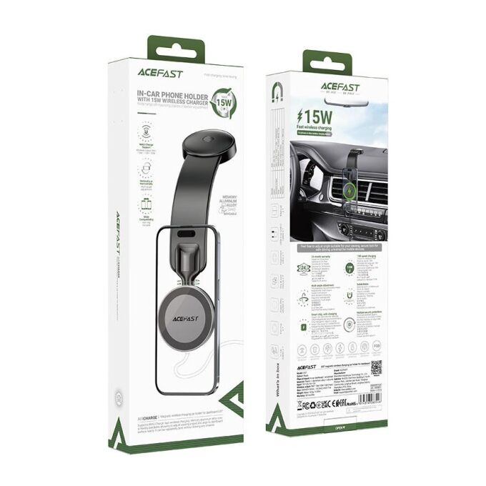 Автодержатель ACEFAST AF-D37-BK Magnetic Wireless Charging Car Holder For Dashboard Black
