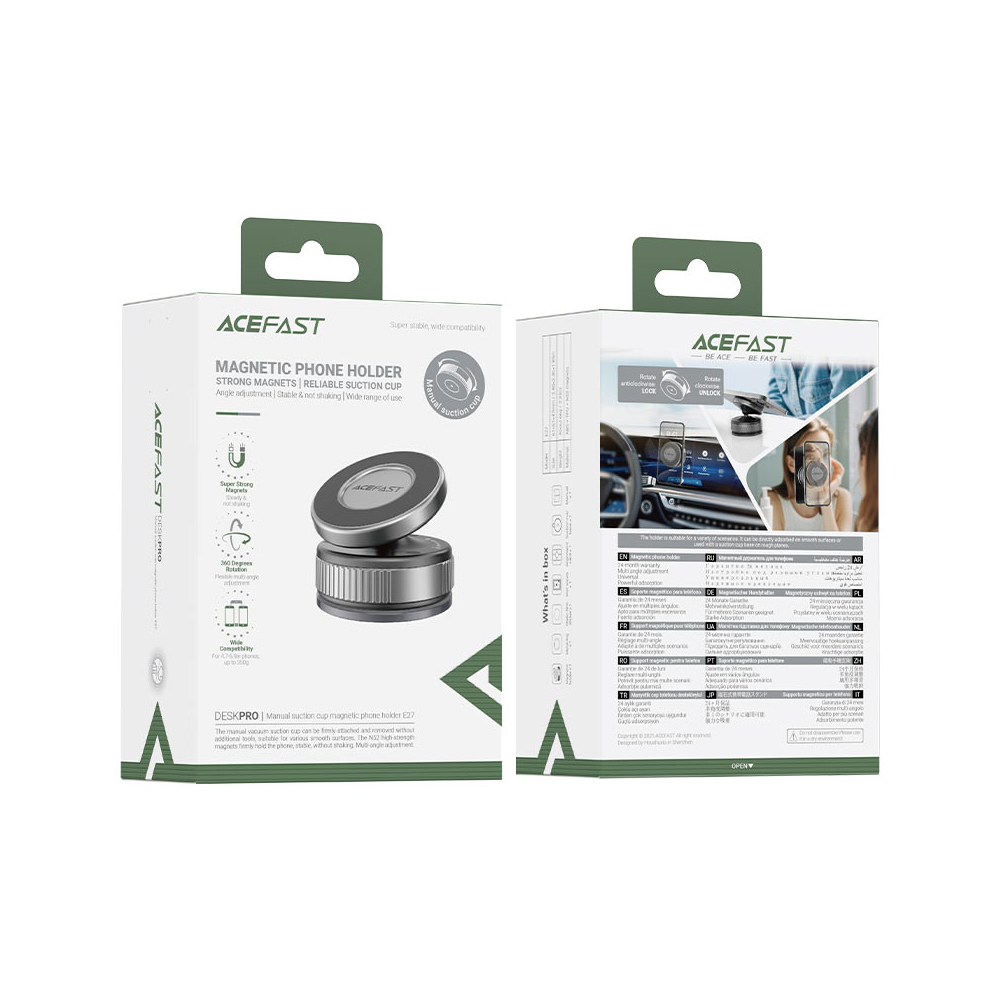 Автодержатель ACEFAST E27 manual suction cup magnetic Phone holder kmetal gray