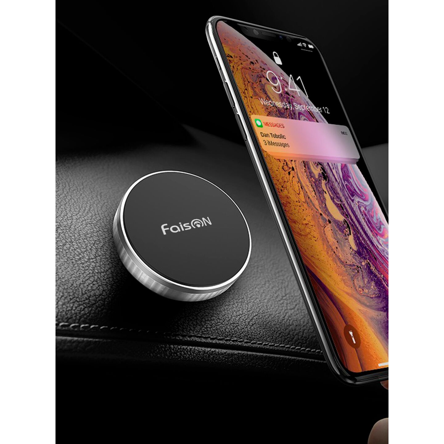 Автодержатель FaisON EH18 Tondo чёрный, серебряная вставка
