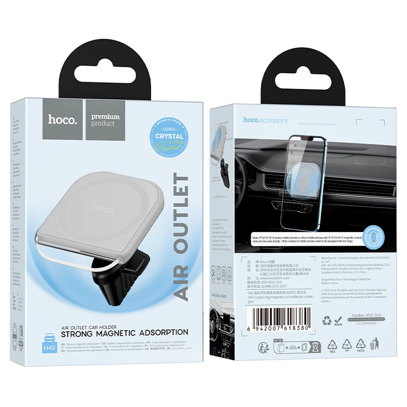 Автодержатель Hoco H42 Crystal ring magnetic car holder(air outlet) gray