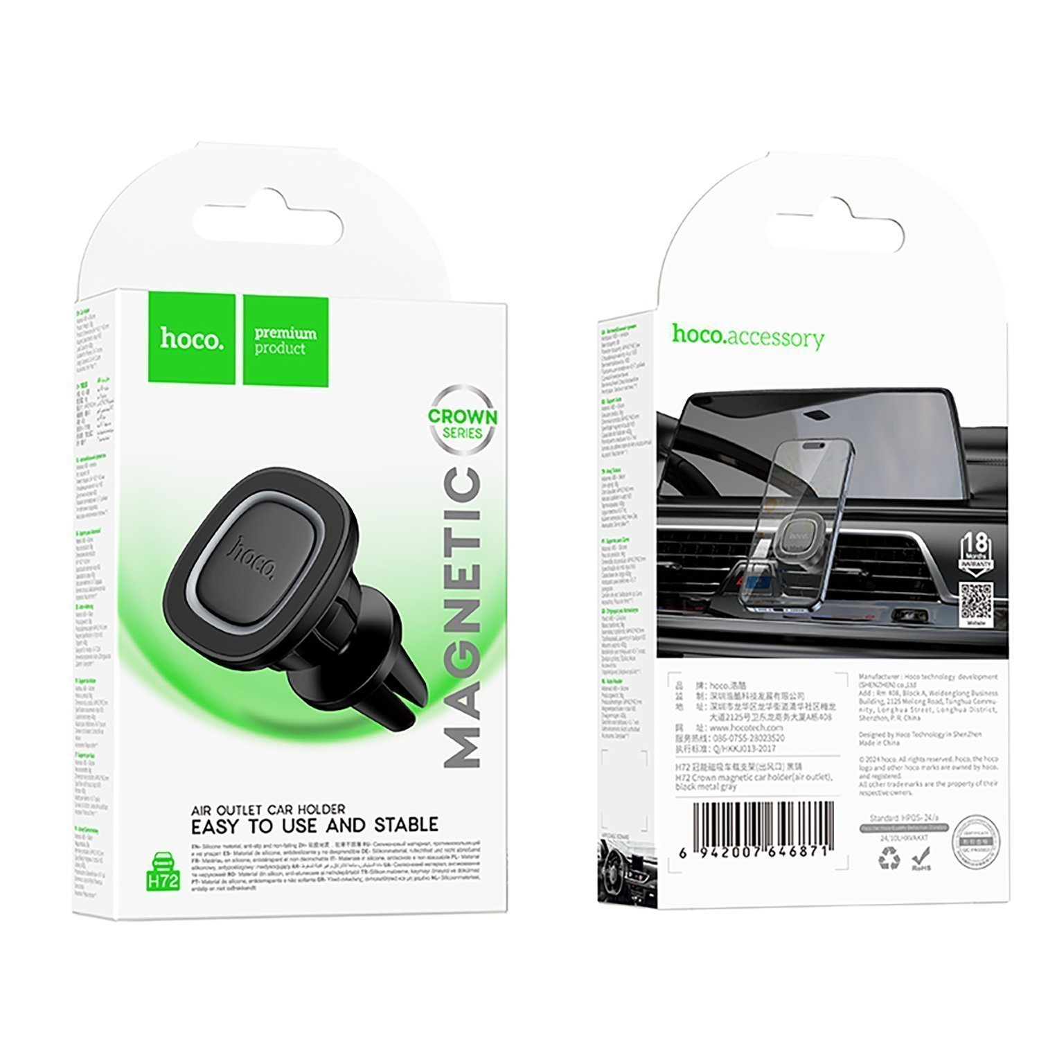 Автодержатель Hoco H72 Crown magnetic car holder (air outlet) black metal gray