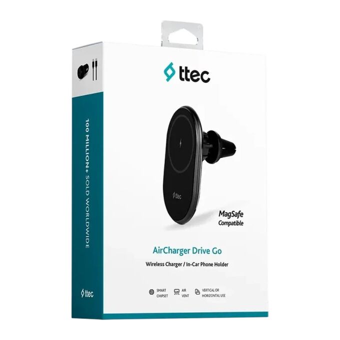 Автодержатель TTEC 2KS33S AirCharger Drive Go MagSafcompt In Car Holder+Charger Black